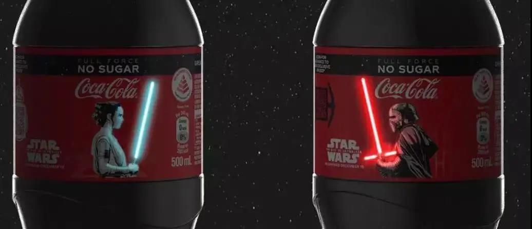 他們將電影《星球大戰》中光劍以OLED屏幕的方式設計在了可口可樂瓶身上。粉絲只要觸摸包裝光劍圖案,光劍就會發光,由電池發光的瓶身可以被點亮500次。