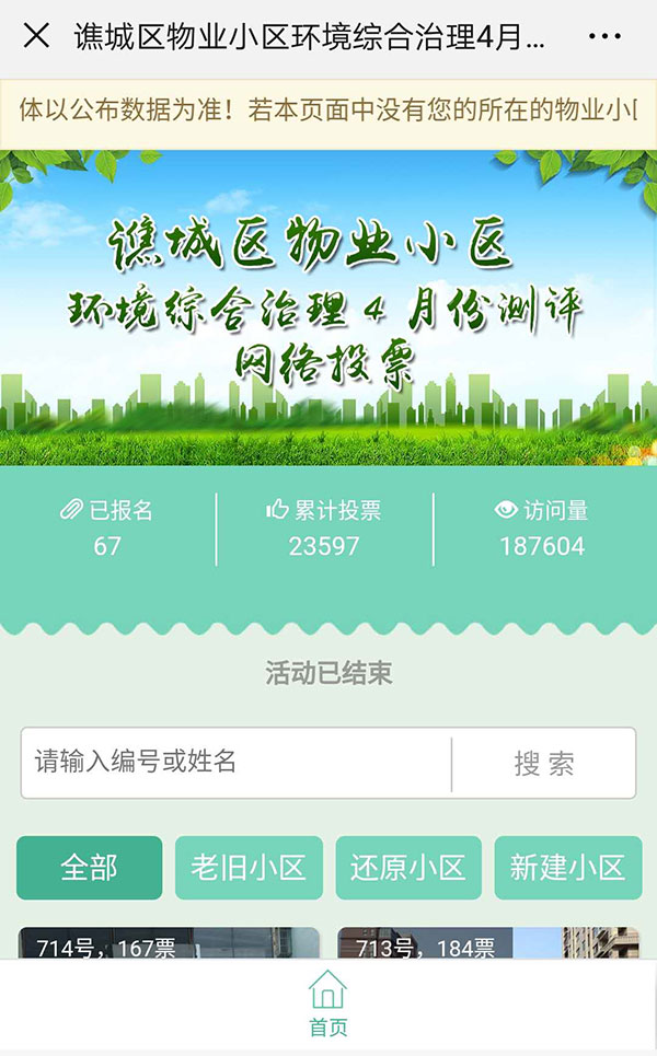 以美化家園、優化環境為目標,通過發動全區社區參與評選活動,提高居民“共建美好、和諧家園”的參與意識,著力加強制度建設、設施建設、隊伍建設,把社區打造成管理有序、服務完善、生態宜居、平安文明、人際和諧、持續發展的社會生活共同體,促進各類居住小區、單位提高綠量,增強綠色實力,提高生活品質,廣泛宣傳生態宜居環境,提倡綠色文明。